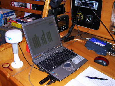 Unser AIS funktionierte sogar mit der GPS-Antenne (provisorisch) auf dem kartentisch. Und das in einem Metallboot: