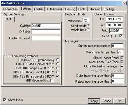 Binary". Ein Computer erstellt aus "gemessenen Wetterdaten" (Stations- meldungen, Bojen usw.) für die Punkte (Koordinaten) eines Gitters "berechnete Wetterdaten". Diese berechneten Wetterdaten (Wind, Luftdruck, Temperatur usw. ) werden binär in "Grib-Files" gespeichert und sind über WL2K abrufbar. Die Daten des Grib-File werden von dem Programm "ViewFax" (ab Version 4.1.1) in Form einer Karte dargestellt. Das Programm ist als Download im Internet verfügbar. Um ein Grib-File von WL2K abzurufen und als Karte darzustellen befolgen Sie die Schritte 1 -5: Zunächst muss Ihr AIRMAIL für den Empfang von Grib-Files richtig konfiguriert werden. Damit AIRMAIL auch binäre Anhänge (attachments) empfangen kann, muss es auf das "B2F-Protokoll" eingestellt werden: Außerdem muss die maximale Größe eines Attachments dem WL2K-System mitgeteilt werden. Das geschieht in Form einer Options-Message an das System. Für den Empfang von Grib-Files sowie anderer größerer Attachments ist eine Größe von 60 000 Byte sinnvoll. Dies gilt allerdings nur für PACTOR III: