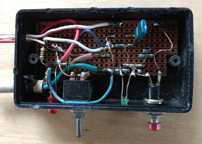 Zwischen Schalter und Taster die grüne LED die leuchtet, wenn der Tune-Prozess erfolgreich war.