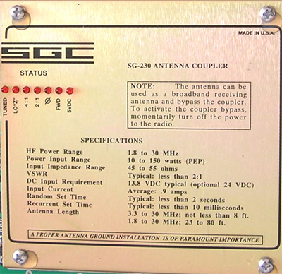 "TUNED" leuchtet: Der Tune-Prozess ist abgeschlossen mit einem Stehwellenverhältnis kleiner (besser) als 2:1