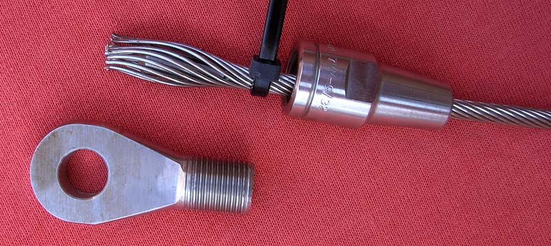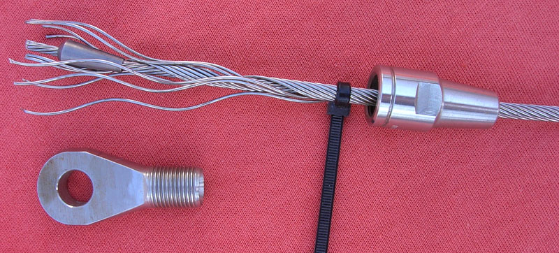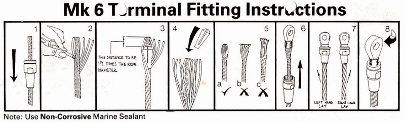 Wenn Sie Schraubterminals als Ersatz für Walzterminals noch nicht kennen bzw. noch nicht selbst erprobt haben, werden Sie dieser "gewöhnungsbedürftigen" Technik zunächst mit großer Skepsis begegnen. Die Vorteile (leichte Montage, leichte Kontrollierbarkeit der Schraubterminals) liegen zwar auf der Hand. Aber die Furcht, das Drahtseil könnte eben doch aus dem Konus rutschen, überwiegt zunächst einmal. Nicht anders erging es mir, als ich von einem Weltumsegler hörte, dass er sein Schiff komplett mit Norseman-Schraubterminals ausgerüstet hatte. Deshalb rüstete ich nicht auf einen Schlag das ganze Rigg um, sondern Draht für Draht, mit jeweils einigen Wochen Abstand… Inzwischen, nach über 12 Jahren und einer problemlosen Weltumsegelung habe ich vollstes Vertrauen zu diesen Terminals. Mit dem Segler, der mir in Trinidad prophezeite "die fliegen doch alle weg" hätte ich eine hochkarätige Wette abschließen sollen. Und die Behauptung, die Terminal-Schraubhülsen würden reißen, kann ich nur auf zu festes Anziehen der Hülse zurückführen. Wie also wird ein Norseman-Schraubterminal montiert ? Hier die original Norseman-Darstellung der Montage: Beachten